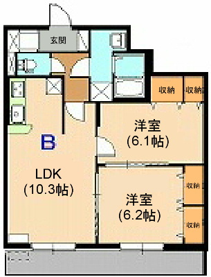 Bタイプ、(2階)LDK10.3、洋6.2、洋6.1 |